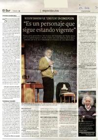 "Es un personaje que sigue estando vigente" [artículo] / Javier Moraga. El Sur (Diario : Concepción, Chile)-- oct. 28, 2014, p. 24. .