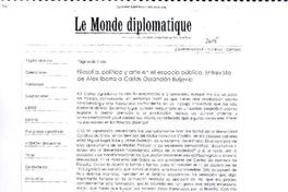 Filosofía, política y arte en el espacio público. Entrevista de Alex Ibarra a Carlos Ossandón Buljevic [entrevista] [artículo] / Alex Ibarra. Le monde diplomatique (Diario : Santiago, Chile)-- (2015 ), p. 1-9. .