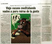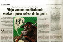 Viejo vacuno meditabundo vuelve a puro reírse de la gente [artículo] / Leonardo Sanhueza. Las Últimas Noticias (Diario : Santiago, Chile)-- jun. 22, 2015, p. 46. .