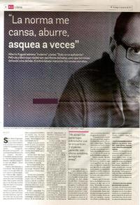 "La norma me cansa, aburre, asquea a veces" [entrevista] [artículo] : J.C.R.