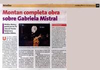 Montan completa obra sobre Gabriela Mistral. [artículo] La Estrella (Diario : Valparaíso, Chile)-- jun. 13, 2015, p. 29. .