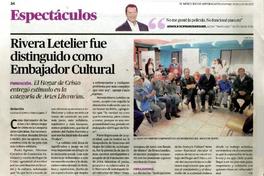 Rivera Letelier fue distinguido como embajador cultural. El Mercurio (Diario : Antofagasta, Chile)-- jun. 28, 2015, p. 34. .