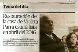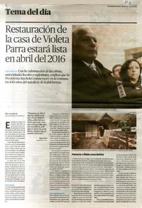 Restauración de la casa de Violeta Parra estará lista en abril del 2016 [artículo] Félix Arancibia M.