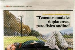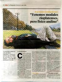 "Tenemos modales rioplatenses, pero físico andino" [entrevista] / [artículo] : Juan Carlos Ramírez. La Segunda (Diario : Santiago, Chile)-- jul. 3, 2015, p. 46-47. .
