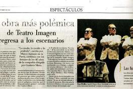 La obra más polémica de teatro imagen regresa a los escenarios [artículo] Eduardo Miranda.