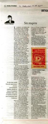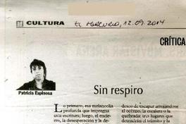 Sin respiro [artículo] / Patricia Espinosa. El Mercurio (Diario : Santiago, Chile)-- sept. 12, 2014, p. 80. .