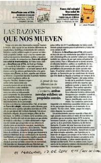 Las razones que nos mueven [artículo] / José Promis. El Mercurio (Diario : Santiago, Chile)-- ago. 17, 2014, p. E14 (suplemento "Revistas de Libros") .
