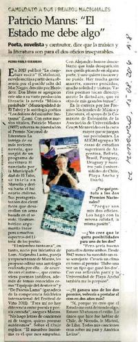 "El Estado me debe algo" [entrevista] / [artículo] : Pedro Pablo Guerrero. El Mercurio (Diario : Santiago, Chile)-- ago. 15, 2014, p. A8. .