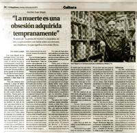 "La muerte es una obsesión adquirida tempranamente" [entrevista] / [artículo] : André Jouffé. El Magallanes (Diario : Punta Arenas, Chile)-- jun. 28, 2015, p. 34. .