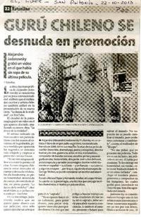 Gurú chileno se desnuda en promoción. [artículo] El Lider (Diario : San Antonio, Chile)-- oct. 22, 2013, p. 22. .