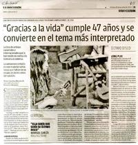 "Gracias a la vida" cumple 47 años y se convierte en el tema más interpretado [artículo] / Carolina Marcos Ch. La Discusión (Diario : Chillán, Chile)-- oct. 18, 2013, p. 21. .