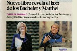 Nuevo libro revela el lazo de los Bachelet y Matthei. [artículo] El Mercurio (Diario : Antofagasta, Chile)-- oct. 15, 2013, p. 27. .
