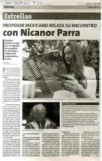 Profesor mexicano relata su encuentro con Nicanor Parra. [artículo] El Líder (Diario : San Antonio, Chile)-- dic. 25, 2013, p. 21. .