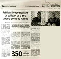 Publican libro con registros de soldados de la zona durante Guerra del Pacífico [artículo] / Martiza Luna. La Región (Diario : Coquimbo, Chile)-- dic. 29, 2013, p. 12. .