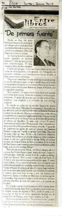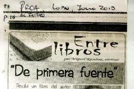 "De primera fuente" [artículo] / Miguel Ramírez. Proa al futuro (Diario : Lebu, Chile)-- jun. 2013, p. 16. .