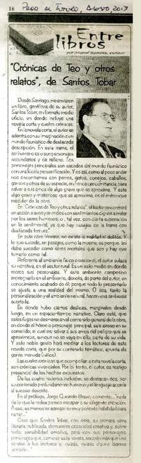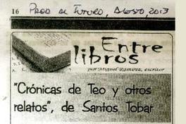 "Crónicas de Teo y otros relatos", de Santos Tobar [artículo] / Miguel Ramírez. Proa al futuro (Diario : Lebu, Chile)-- (ago. 2013), p. 16. .