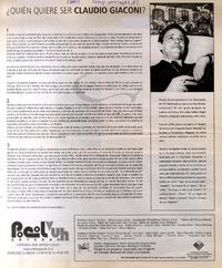 ¿Quién quiere ser Claudio Giaconi?. [artículo] Carajo (Diario : Santiago, Chile)-- no 4 (sept. 2005), p. 2. .