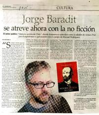 Jorge Baradit se atreve ahora con la no ficción [entrevista] / [artículo] : Alex Miranda H. El Mercurio (Diario : Santiago, Chile)-- Julio 18, 2015, página A15. 1 página: ilustraciones en color ; 25 cm. .