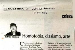 Homofobia, clasismo,arte [artículo] Patricia Espinosa.