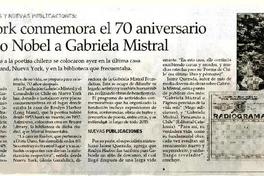 Nueva York conmemora el 70 aniversario del Premio Nobel a Gabriela Mistral [artículo] Marilú Ortiz de Rozas.