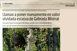 Llaman a poner nuevamente en valor olvidada estatua de Gabriela Mistral [artículo] Carolina Marcos Ch.