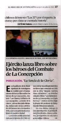 Ejército lanza libro sobre los héroes del combate de La Concepción. [artículo] El Mercurio (Diario : Antofagasta, Chile)-- jul. 9, 2015, p. 27. .