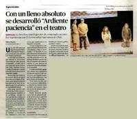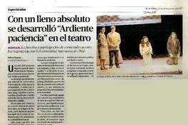 Con un lleno absoluto se desarrolló "ardiente paciencia" en el teatro [artículo] / Nelson Zapata. .