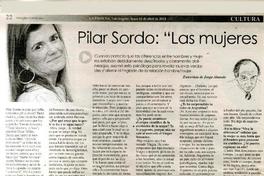 Pilar Sordo: "las mujeres erotizamos todo, menos la cama" [entrevista] [artículo] / Jorge Abasolo. La Tribuna (Diario : Los Ángeles, Chile)-- abr. 16, 2012, p. 22-23. .