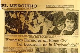 "Francisco Encina es un héroe civil del desarrollo de la nacionalidad". [artículo] El Mercurio (Diario : Santiago, Chile)-- ago. 25, 1965, p. 23 y 31. .