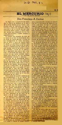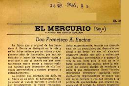 Don Francisco A. Encina. [artículo] El Mercurio (Diario : Santiago, Chile)-- ago. 24, 1965, p. 3. .