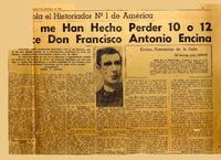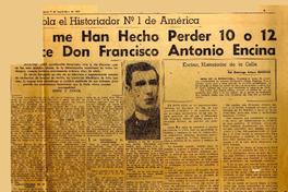 "Estos ochenta años me han hecho perder 10 o 12 días de trabajo", dice don Francisco Antonio Encina [artículo] / Domingo Arturo Garfias. El Mercurio (Diario : Santiago, Chile)-- sept. 9, 1954, p. 8 y 9. .