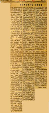 Ochenta años [artículo] / José María Cifuentes. El Diario Ilustrado (Diario : Santiago, Chile)-- sept. 30, 1954, p. 3. .
