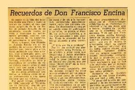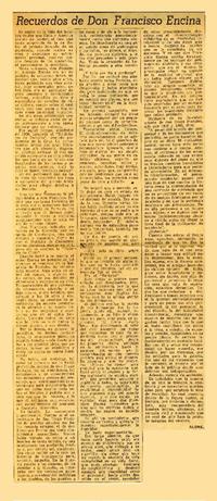 Recuerdos de Don Francisco Encina [artículo] / Alone. El Mercurio (Diario : Santiago, Chile)-- ago. 25, 1965, p. 3. .