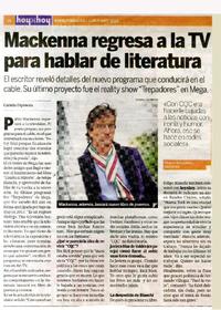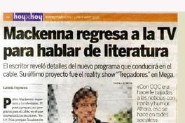 Mackenna regresa a la TV para hablar de literatura [entrevista] [artículo] Camila Espinoza.