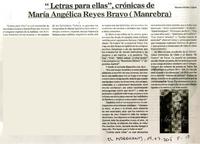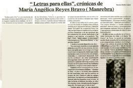 "Letras para ellas", crónicas de María Angélica Reyes Bravo (Manrebra) [artículo] Marino Muñoz Lagos.
