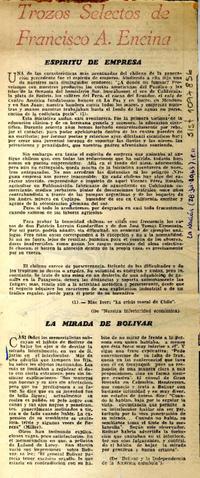 Trozos selectos de Francisco A. Encina. [artículo] La Nación (Diario : Santiago, Chile)-- jul. 28, 1963, p. 11. .