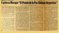 Espinosa Moraga: "El precio del a paz chileno-argentina" [artículo] / Hernán del Solar. El Mercurio (Diario : Santiago, Chile)-- sept. 13, 1964, p. 17. .
