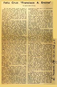 Feliú Cruz: "Francisco A. Encina" [artículo] Edmundo Concha.