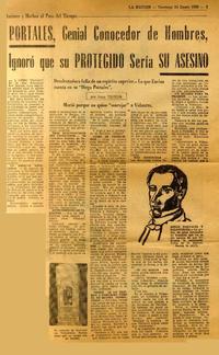 Portales, genial conocedor de hombres, ignoró que su protegido sería su asesino [artículo] / Juan Tejeda. La Nación (Diario : Santiago, Chile)-- ene. 24, 1965, p. 5. .