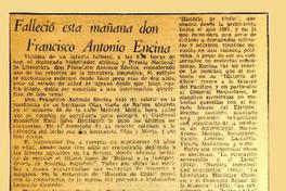 Falleció esta mañana don Francisco Antonio Encina. [artículo]