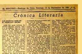 Crónica literaria: los noventa años de don Francisco Encina [artículo] / Alone. El Mercurio (Diario : Santiago, Chile)-- sept. 13, 1964, p. 16. .