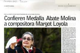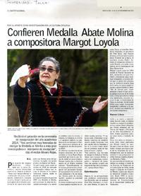 Confieren medalla de Abate Molina a compositora Margot Loyola [artículo] M.A.