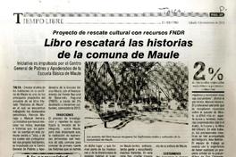 Libro rescatará las historias de la comuna de Maule. [artículo] El Centro (Diario : Talca, Chile)-- nov. 3, 2012, p. 25. .
