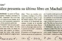 Angélica González presenta su último libro en Machalí. [artículo] El Libertador (Diario : Rancagua, Chile)-- nov. 14, 2012, p. 21. .
