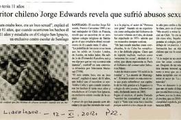 Escritor chileno Jorge Edwards revela que sufrió abusos sexuales. [artículo] El Libertador (Diario : Rancagua, Chile)-- nov. 12, 2012, p. 22. .