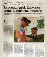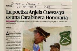 La poetisa Anjela Cuevas ya es una carabinera honoraria. [artículo] Diario Atacama (Diario : Copiapó, Chile)-- oct. 26, 2013, p. 29. .