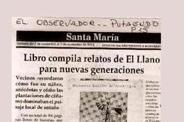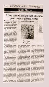 Libro compila relatos de El Llano para nuevas generaciones. [artículo] El Observador (Diario : Putaendo, Chile)-- Noviembre 2 al 7, 2013, página 15. .