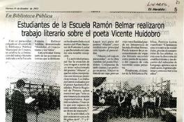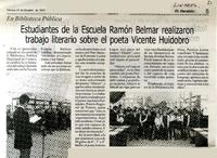 Estudiantes de la Escuela Ramón Belmar realizarón trabajo literario sobre el poeta Vicente Huidobro. [artículo]