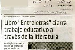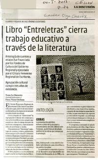 Libro "Entreletras" cierra trabajo educativo a través de la literatura. [artículo] La Discusión (Diario : Chillán, Chile)-- enero 4, 2013, página 24. .