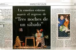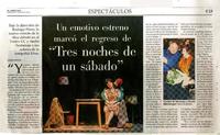 Un emotivo estreno marcó el regreso de "Tres noches de un sábado" [artículo] Eduardo Miranda.
